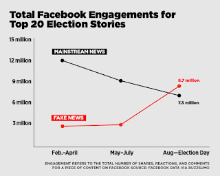 The election was fueled by post after post containing fake news on Facebook. In the final few months leading up to Election Day, fake news stories were getting more attention than factual stories from sources like the Washington Post and the New York Times. Up until August, major news outlets were dominating the engagements on Facebook, receiving more shares, likes, comments and reactions than fake news at the time. That suddenly changed once the countdown to Election Day crept closer and closer, ultimately performing better than stories from major news outlets by over 1.3 million interactions.
