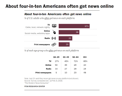 Most people get their news from local television, not from smartphones or the internet. The Pew Research Center discovered that in 2016, 57 percent of adult Americans get their news from local TV.