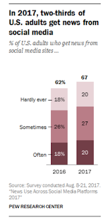 Yet the world of journalism is vast and not limited to newspapers, which is why I think we will see a transition from more traditional ways of consuming news to highly customized interactions via social media. Social media is currently not the main source of news for U.S. adults, but it is on the rise thanks to the norm of smartphones and their quick access to information. Pew Research stated that significantly more people got their news from social media in 2017 than in 2016.
