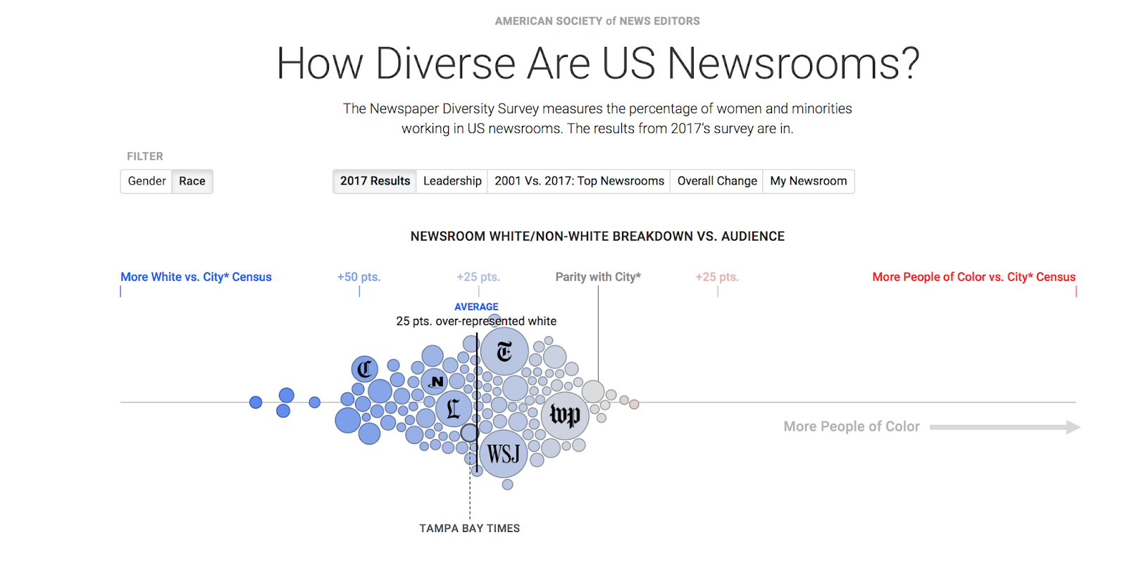 Although there is a clear need for more representation in the media, news outlets continually underrepresent minority communities. According to an American Press Institute poll, 75 percent of blacks had at least some doubt about the accuracy of news surrounding their community, and 66 percent of Hispanics said the same.